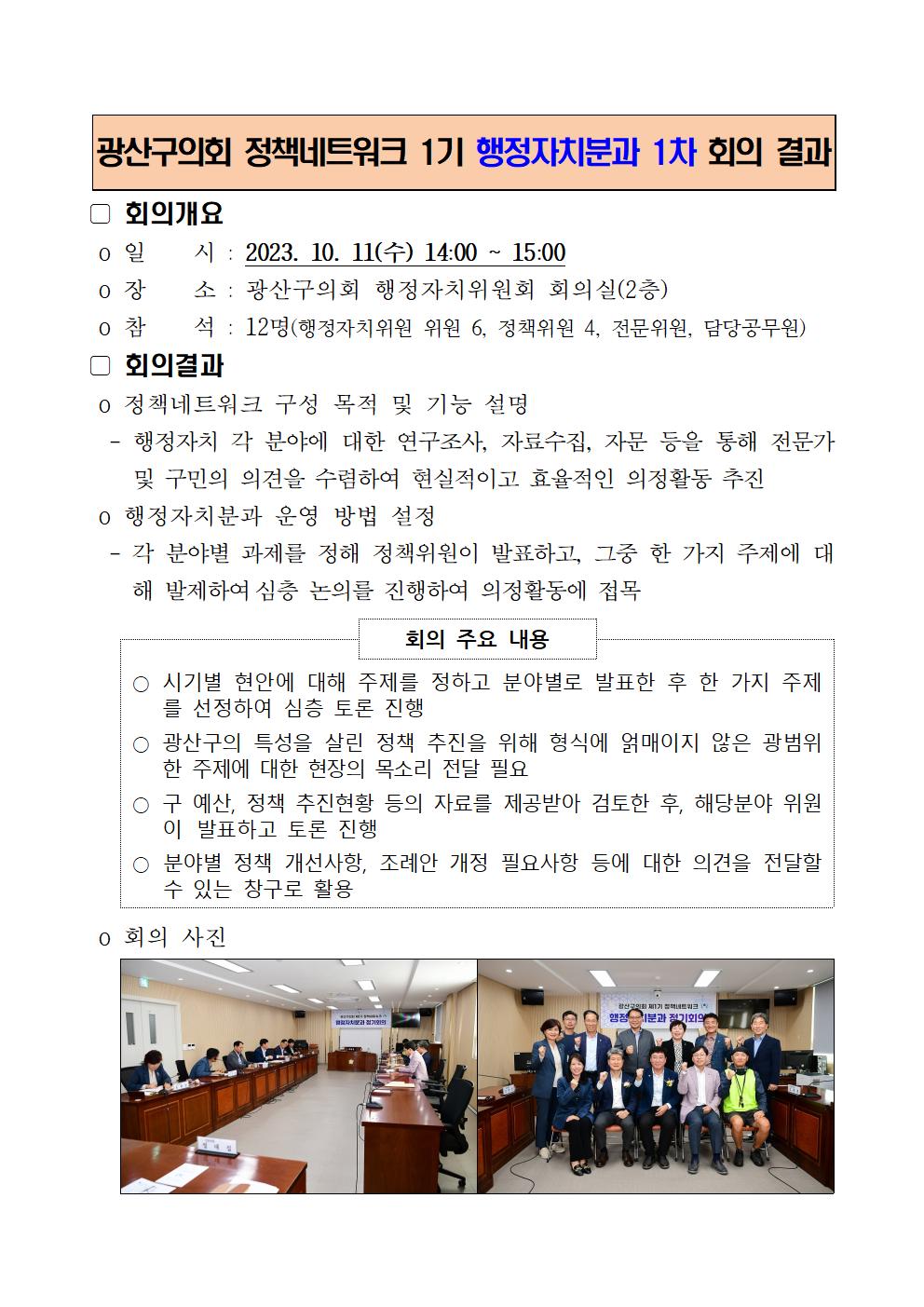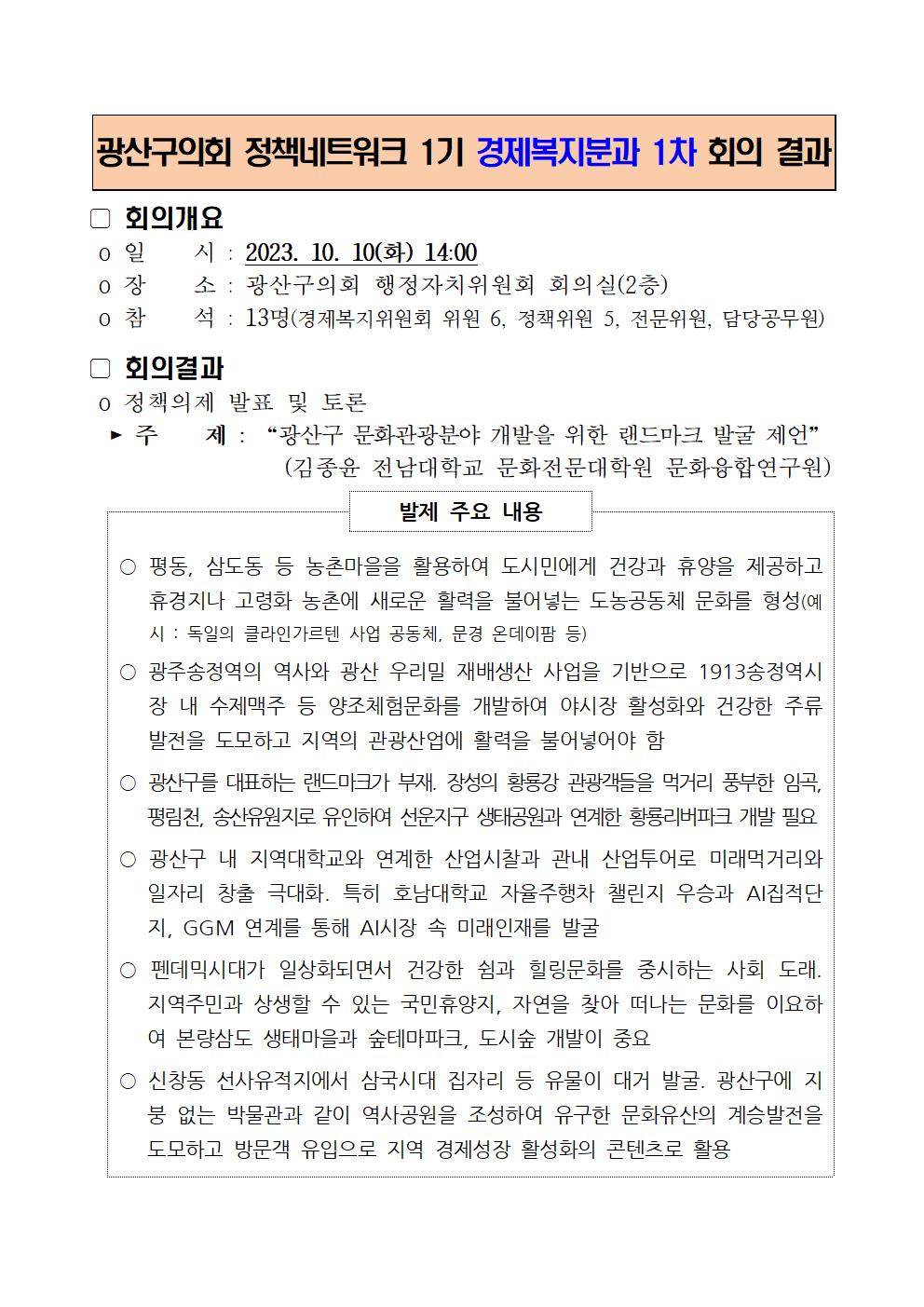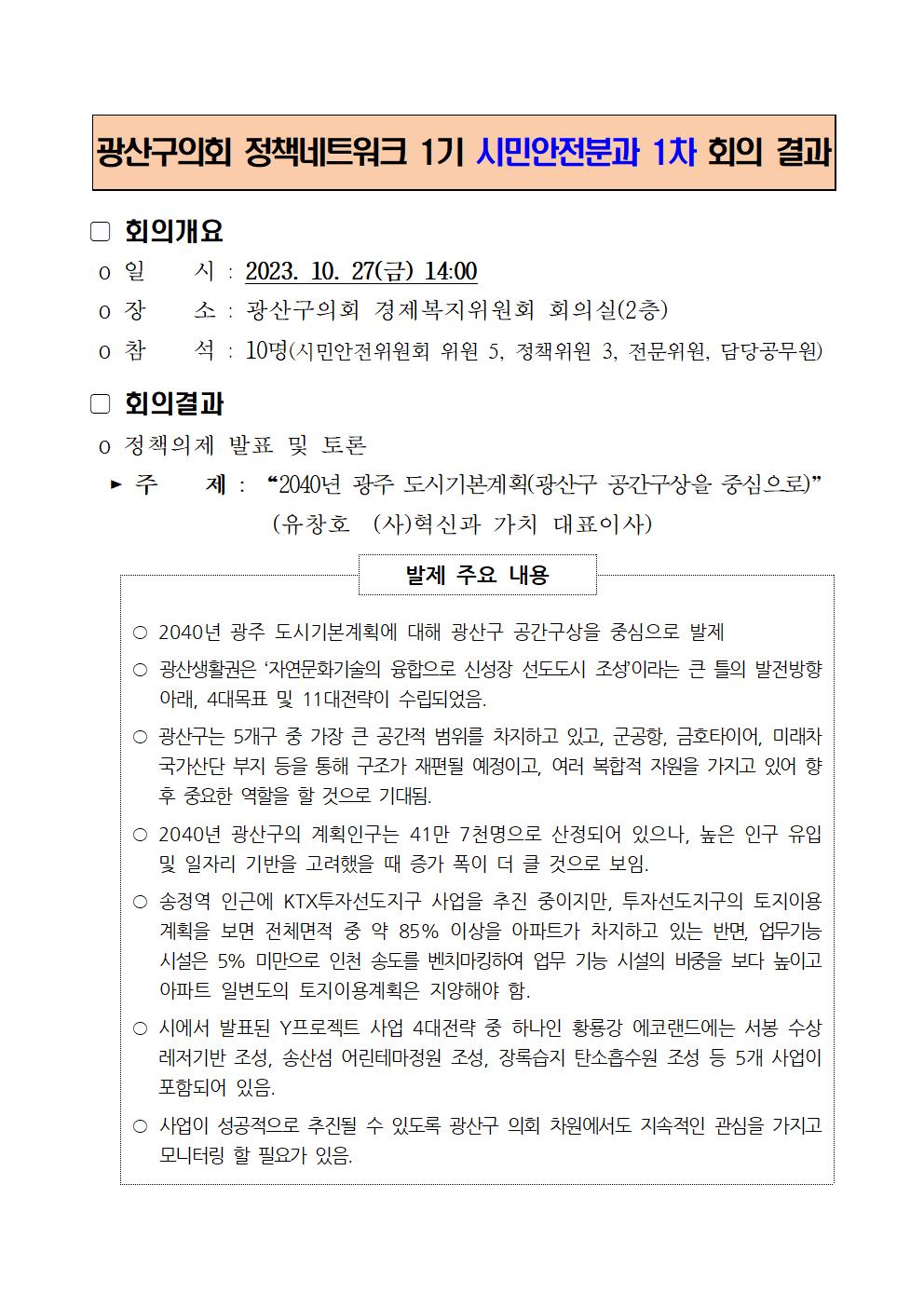 2023년 광산구의회 정책네트워크 1기 활동 결과