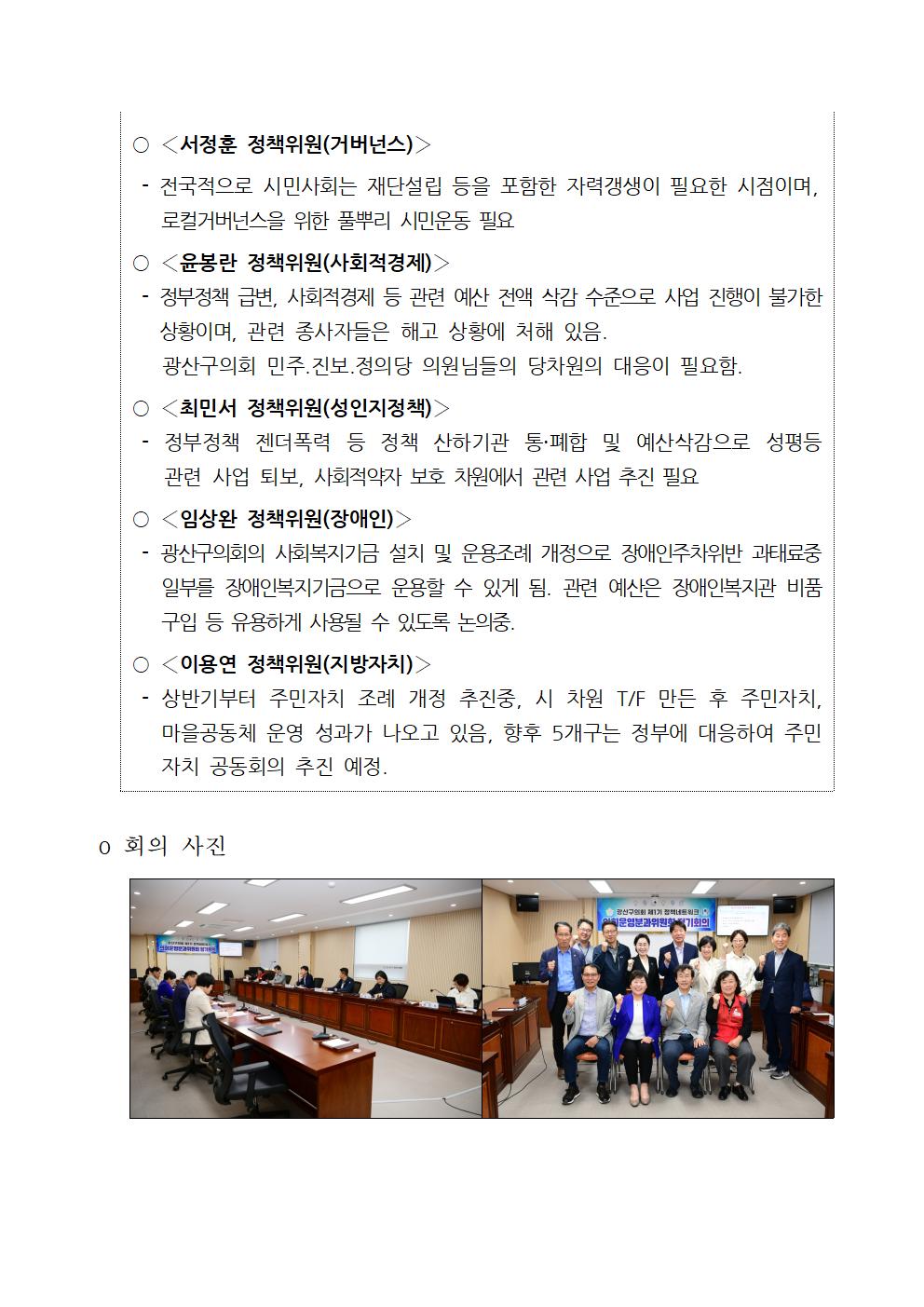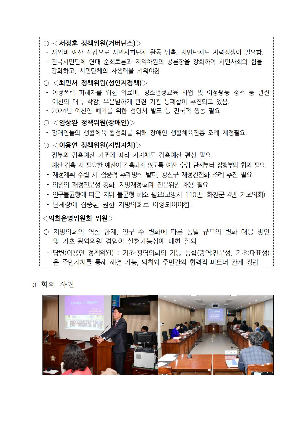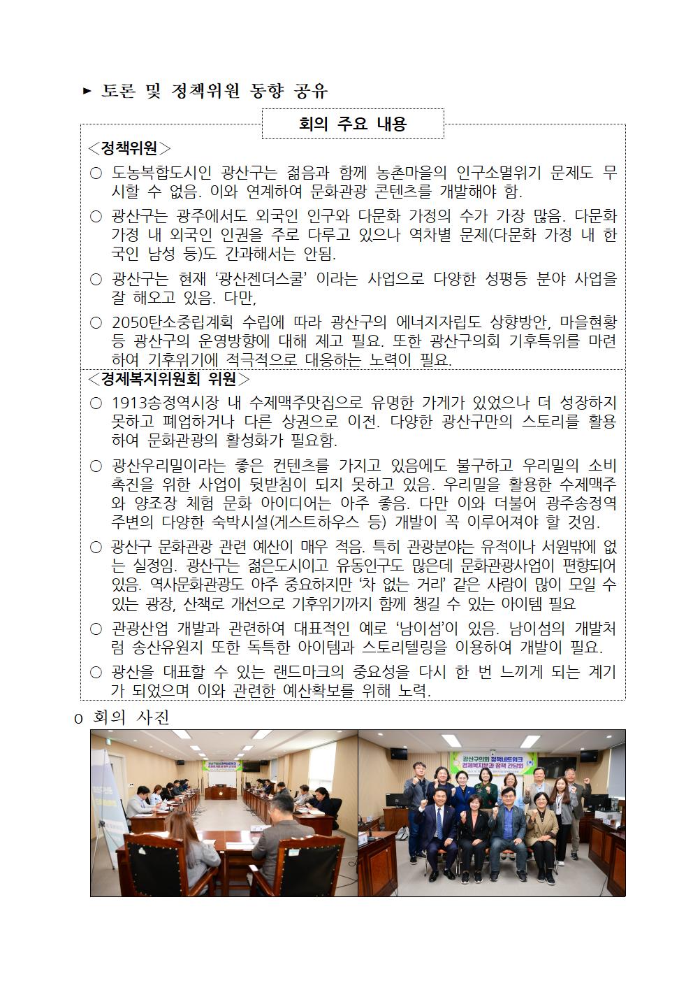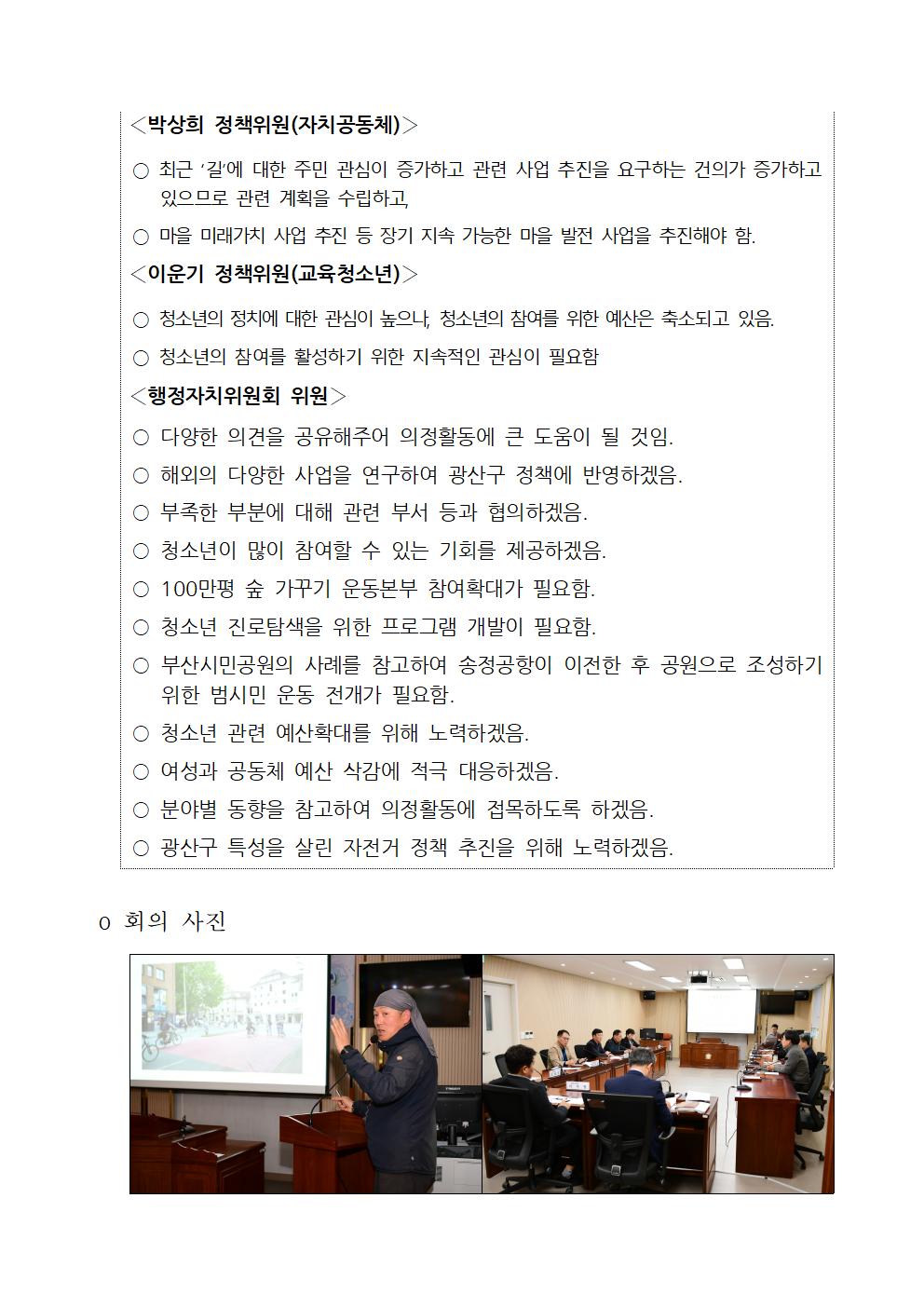 2023년 광산구의회 정책네트워크 1기 활동 결과
